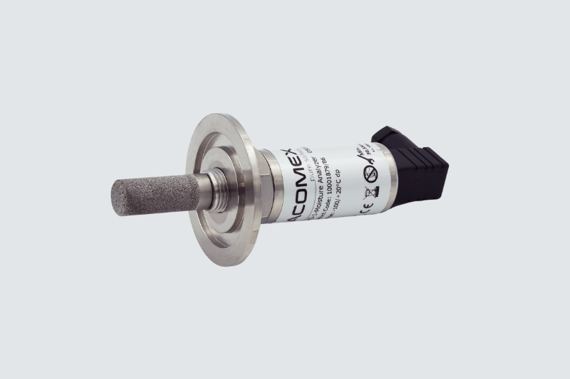 Industrial sensor for continuous measurement of the humidity level in glove boxes. Accurate and fast metallic ceramic sensor. The sensor is mounted on a probe holder with ISO KF40 fittings on the purification circuit at the glove box outlet. Service life of up to several years under normal conditions of use in a glove box. After a period, it is recommended to replace the sensor which comes provided with a 7-point calibration certificate (NPL – NIST).
